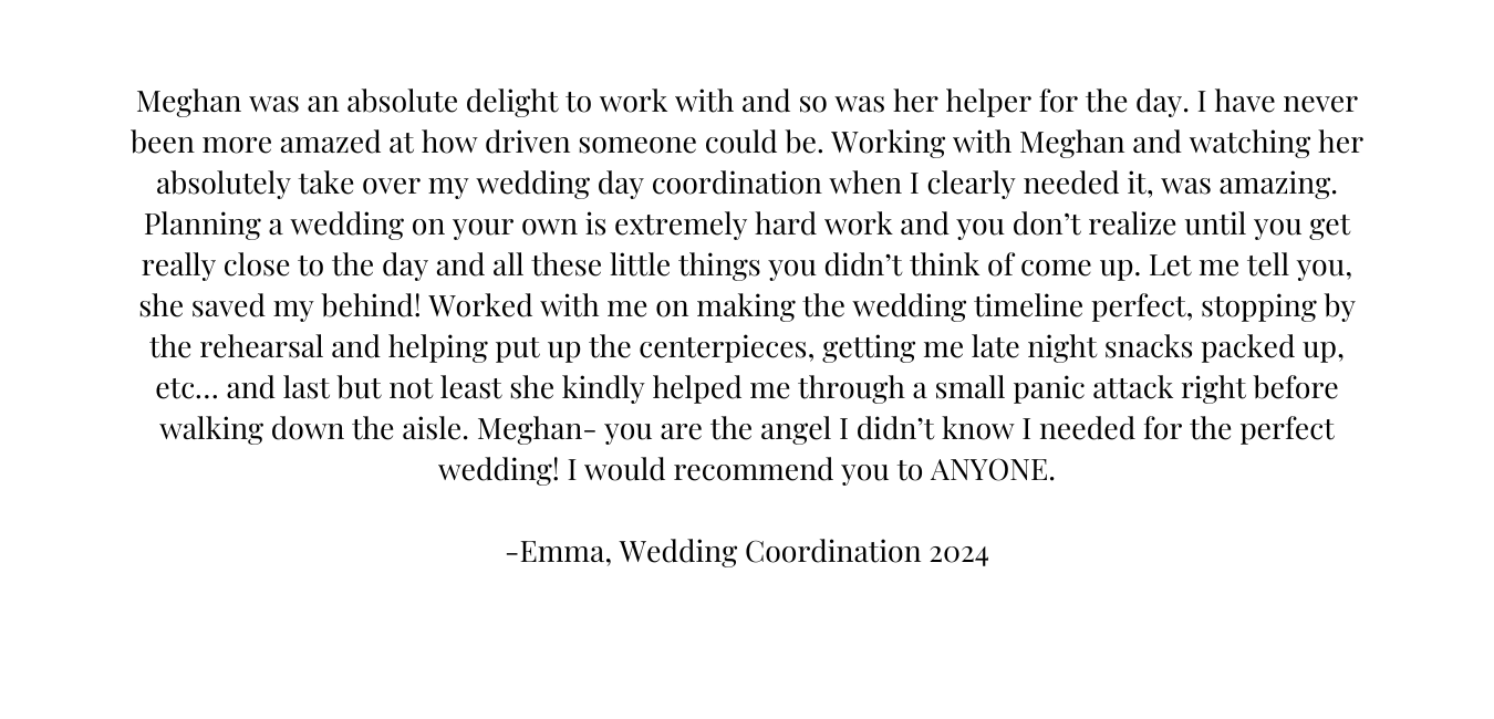 Saying “Yes” to your engagement was the easy part, now it is time to start planning your special day. This is where I come in! I love helping couples anyway I can. So if you just need a little help at the end or if you need a guiding hand starting day one, I am here for you.