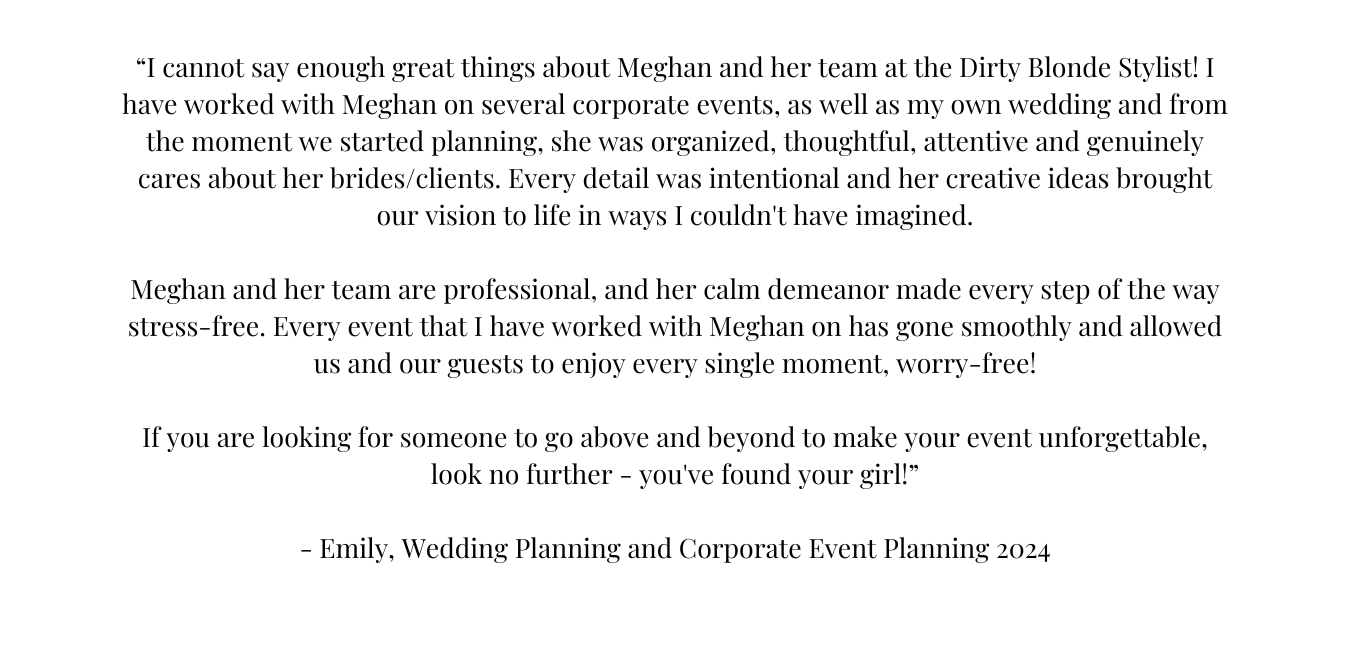 The Dirty Blonde Stylist was created out of a love to create things that are beautiful. From weddings, parties, product photography, and wardrobe styling, there are unlimited opportunities to make ordinary moments sparkle! Serving my clients is my primary focus, whether that’s creating social media content for you or planning your big day, I am here for you and I would love to work with you!