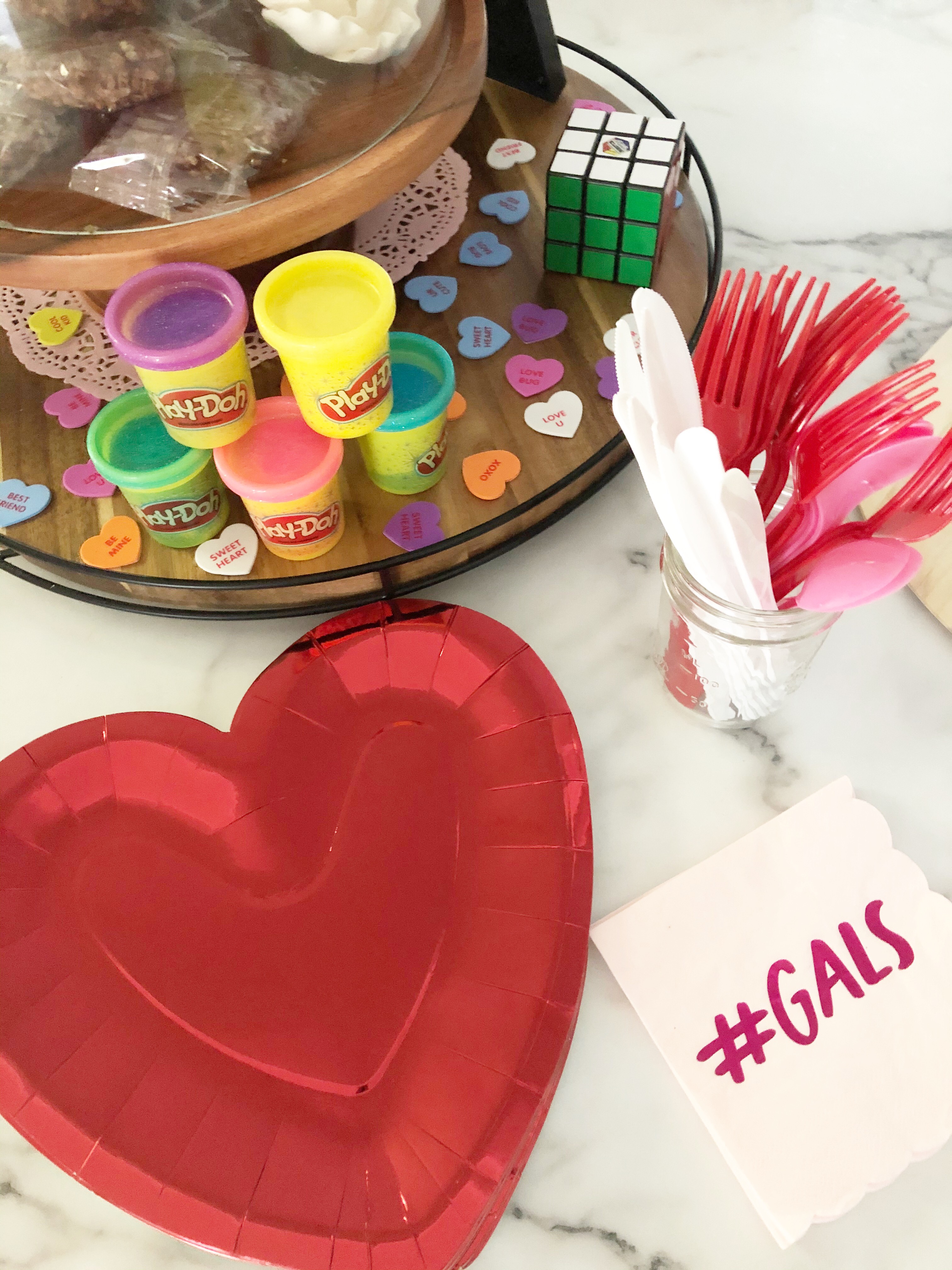 Galentine’s has become a holiday that I am known for. Every year I gather my best girls and celebrate each other. It is always a girly affair complete with yummy food, all things pink and an unique theme. This year I decoded to channel the younger days in our lives. That time in life when we were giving valentine’s to everyone in our class, spreading love all over. After all “girls just wanna have fun” so bring in the 90’s! Today I will be sharing highlights and DIY tips on how our 90’s gathering came to be.
