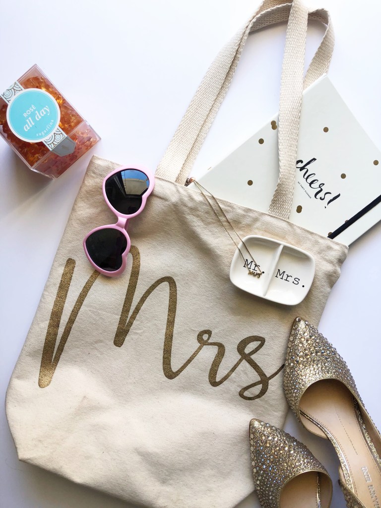 The MRS tote bag – This was a gift from one of my bridesmaids that I absolutely love. I fell in love with the title Mrs. rather than fiancĂ©e or bride. I will always be a Mrs. and am proud to carry this tote around everyday in my married life.