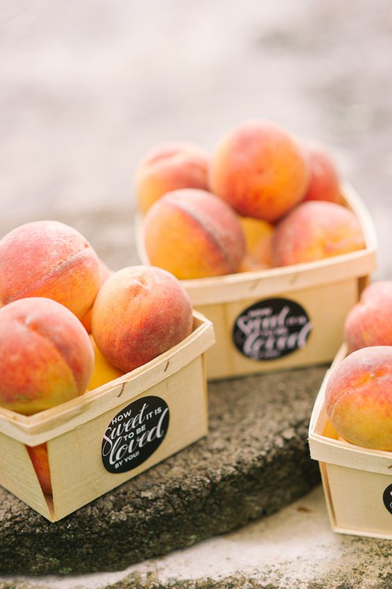 Fruit can be a refreshing and Easy way to bring color and freshness to your centerpieces. Select a unique vase or bowl like a blue etched pattern then add lemons. Or choose a tall glass vase and fill with peaches. You can always add table numbers to the tops of these displays by adding a small piece of foam in the center under the fruit.